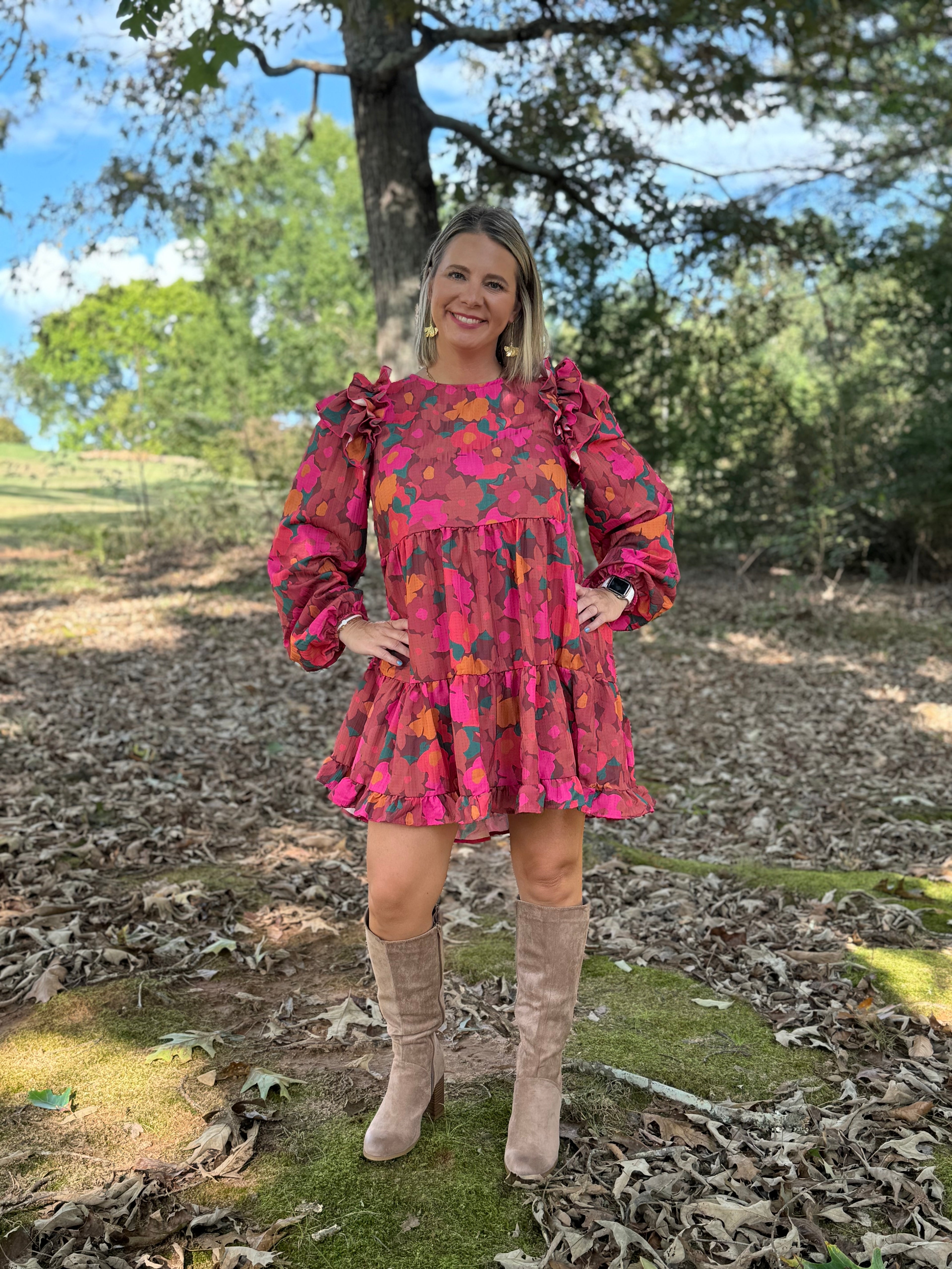 Bucketlist Corduroy Poof sleeve babydoll dress