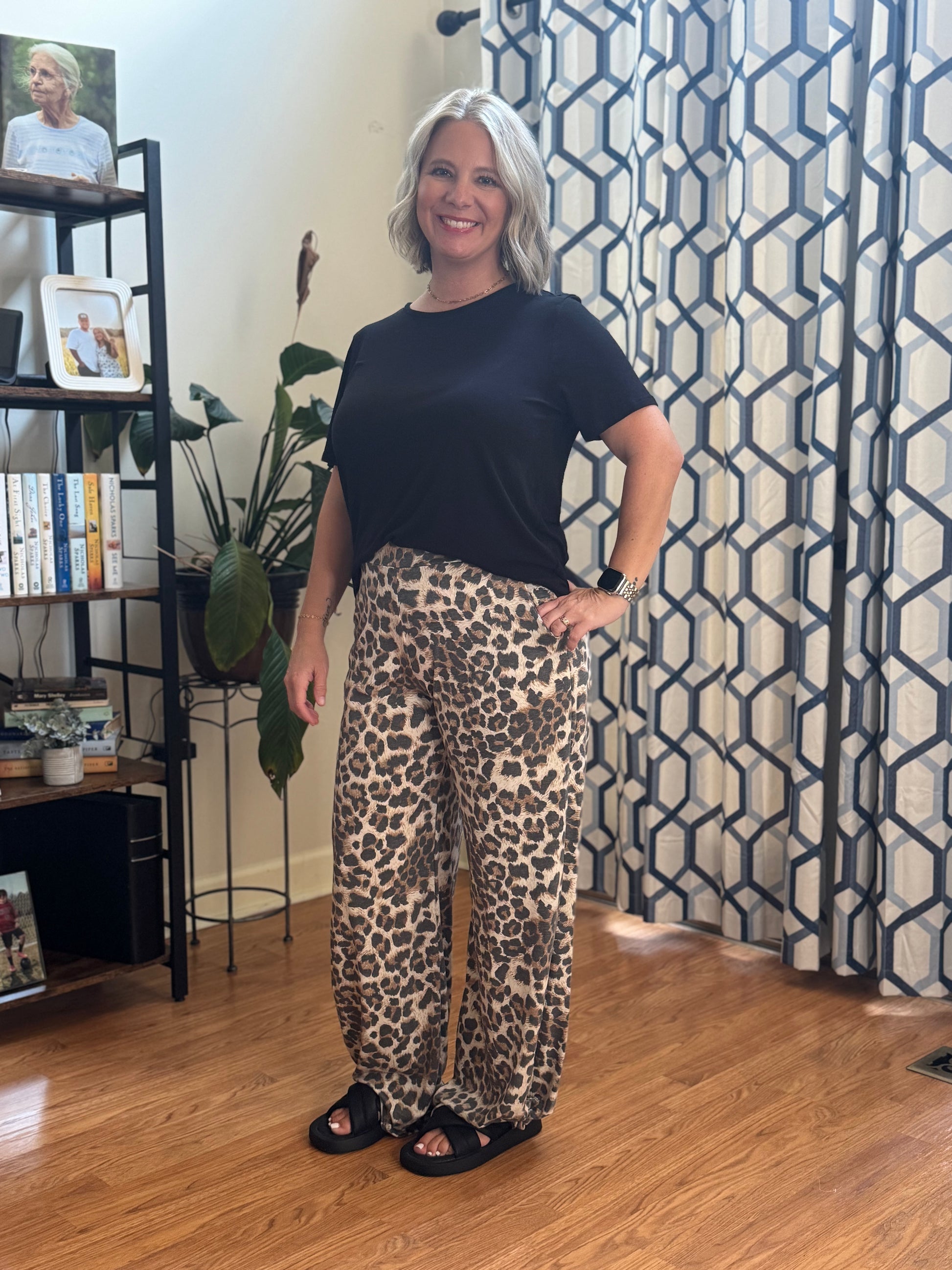 Leopard print lightweight split side ankle tie pants
